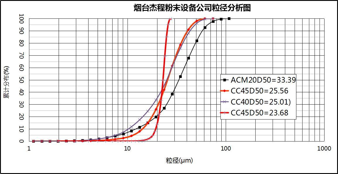 表1 杰程粒径优选磨粉机组粉碎粉末涂料样品-1粒度分布