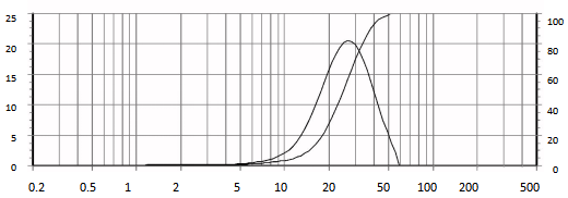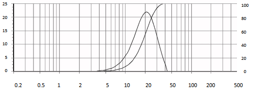 | D10 14.50 μm | D25 19.11 μm | D75 31.97 μm | D90 38.41 μm | ||||||||||